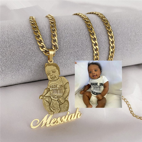 Lateefah OEM Custom Frosted Photo Name Stainless Steel Kids Picture PVD Plated Necklace for Family Memory Gift